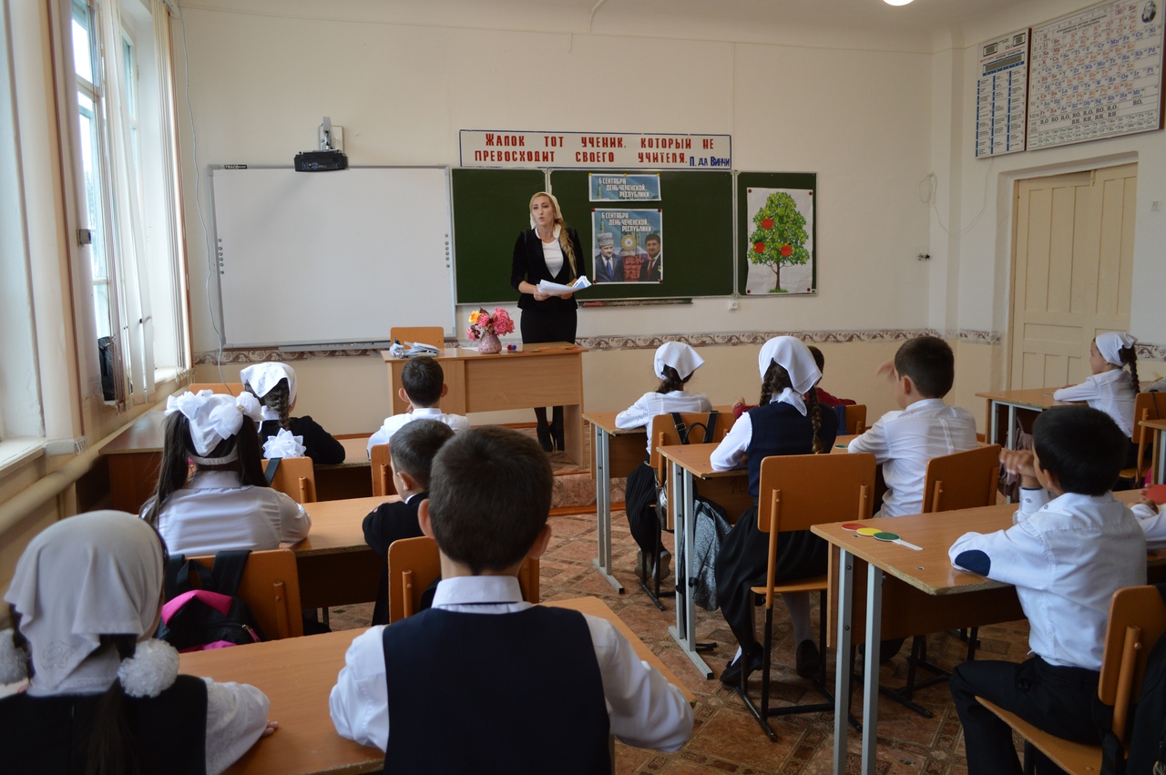 Муслиевой М. Р. проведен открытый классный час «День Чеченской Республики» в 3б классе. Классный час призван привитию чувства патриотизма, любви и гордости за свою республику.