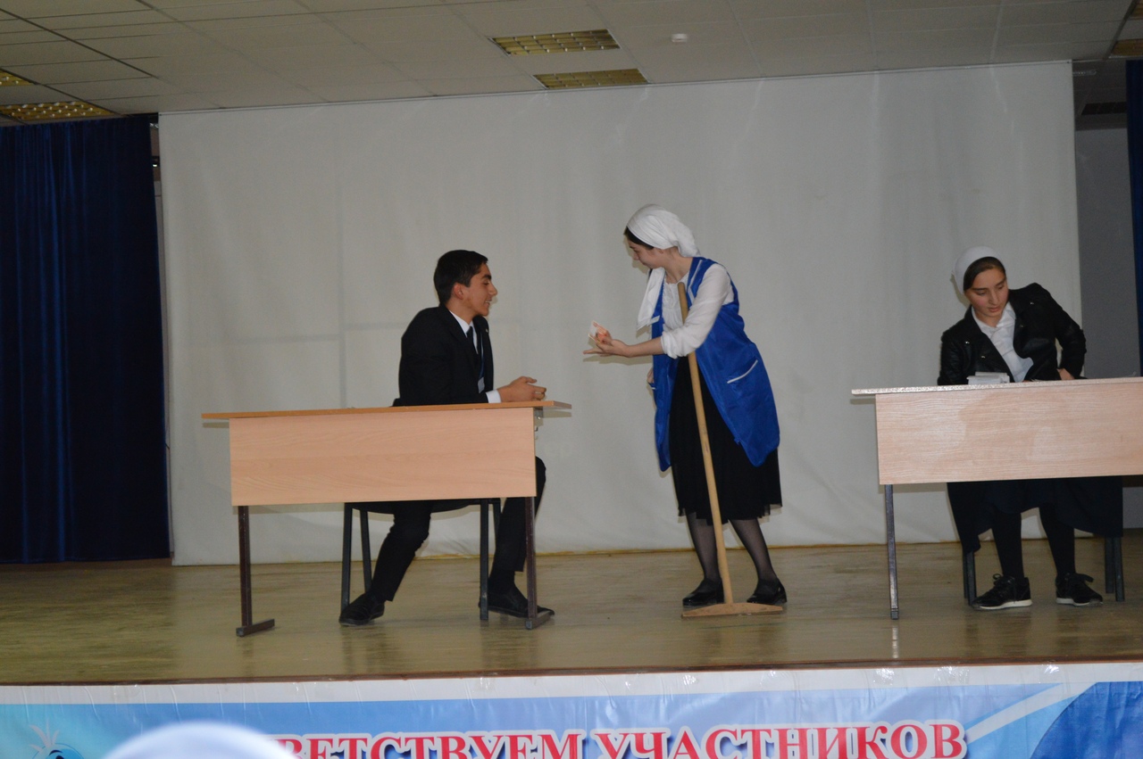 Нашу школу представила команда «Новое поколение». Творческая активность, юмор, веселье царило на сцене, радуя зрителей-болельщиков. Школа выражает благодарность команде «Новое поколение» - Сулаевой Раяне – капитану команды, Абдулаевой Кабират – ведущей программы КВН и участницы команды, Исмаилову Мохьмад-Амину, Сулейманову Ибрагиму, Истамиловой Хеде, Махаевой Хадижат, Мурадовой Иман, Хациеву Тамерлану!