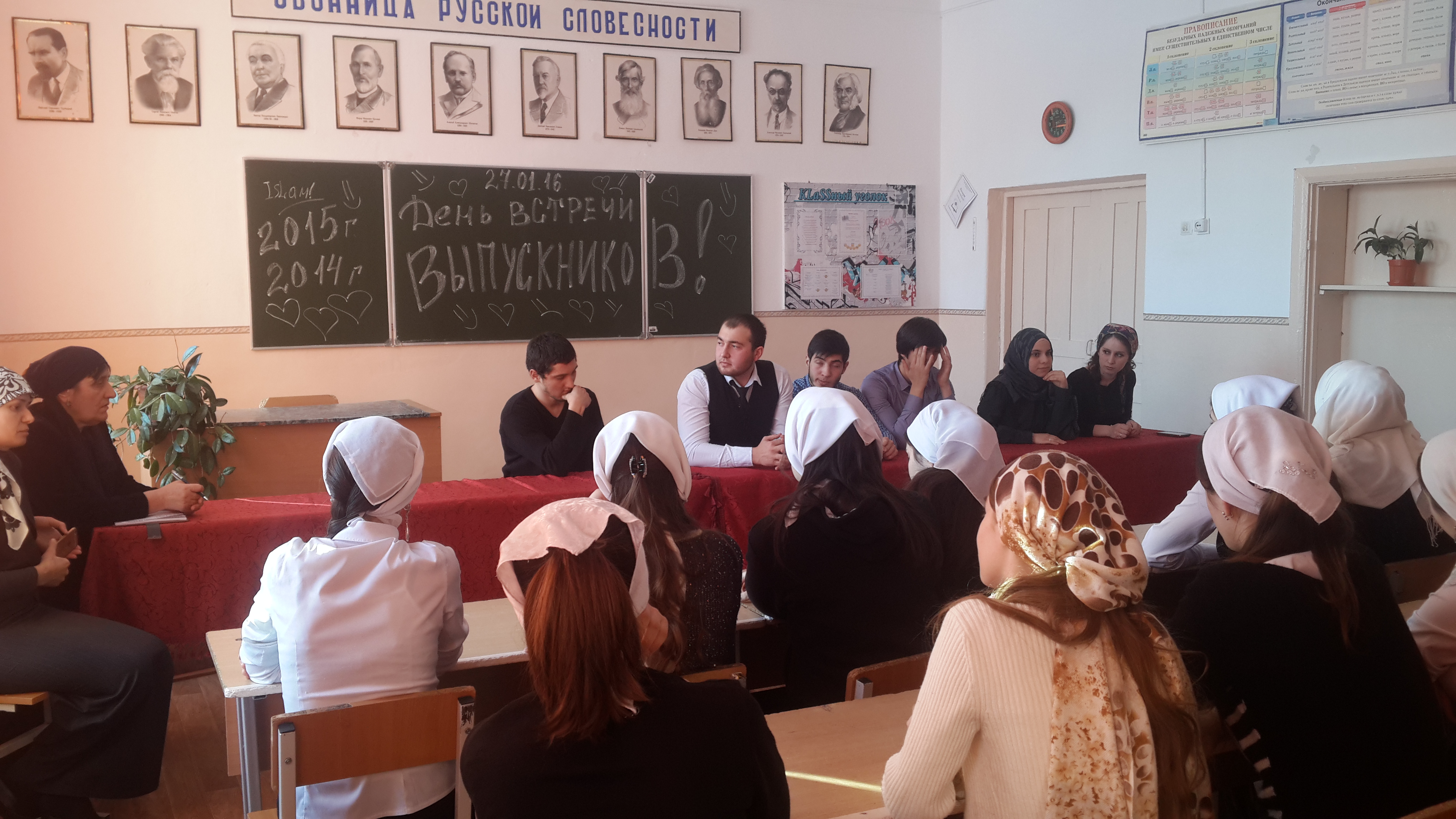 27.01.201627 января 2016 года по инициативе заместителя директора по воспитательной работе Умаровой Я. А. и организатора Лаевой З. О. в Ассиновской средней общеобразовательной школе №2 состоялась встреча старшеклассников с выпускниками школы. На встречу пришли выпускники 2014, 2015 гг. Мурадов И., Джандарова Р., Исаева М., Абубакаров А., Муртазов И., Хациев А. Также присутствовали заместитель директора по учебной части Гансуева М. Р., заместитель по методической работе Хамзатова З. Х., психолог Гелаева А. Б., учитель физической культуры Сулейманов А. Ш. и др.Выпускники рассказывали с какими трудностями они столкнулись будучи студентами высших учебных заведений. Отвечая на вопросы учащихся, выпускники отметили, что они должны сами прийти к мысли о необходимости изменений своего поверхностного отношения к учебе, читать, познавать, интересоваться и не повторять ошибок предшественников.