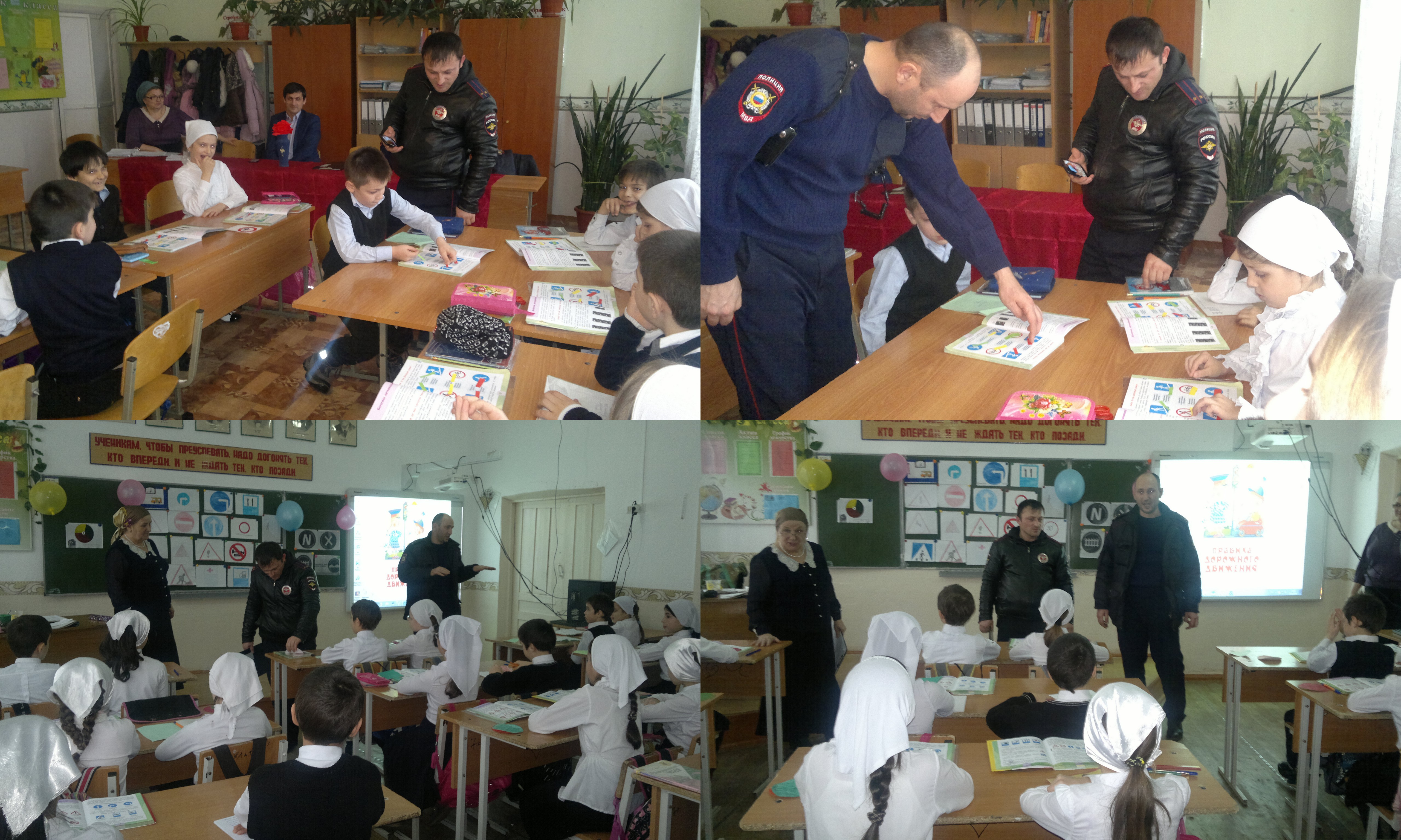 29.01.2016В рамках недели окружающей среды в начальных классах Ассиновской средней общеобразовательной школе №2 29 января 2016 года проведены классные часы по теме: «Берегись автомобиля» во 2а классе – классный руководитель Сулаева Т. М., «Дорожные знаки» в 3а классе – классный руководитель Мирзоева М. М.В мероприятиях приняли участие инспектор по пропаганде ПДД ОГИБДД Автаев А. А. и инспектор ПДН Муцаев А. Ш. Обращаясь к детям Автаев А. А. сказал, соблюдение ПДД – это закон сохранения жизни, твердые навыки безопасного поведения на улицах и дорогах, изучение и выполнение ПДД позволит оценивать обстановку на улицах и дорогах, ориентироваться в ней.Директор школы Сулейманов Р. Ш., инспектор ПДН Муцаев А. Ш., заместитель директора по воспитательной работе Умарова Я. А., заместитель директора по методической работе Хамзатова З. Х. поблагодарили детей за хороший уровень знаний ПДД