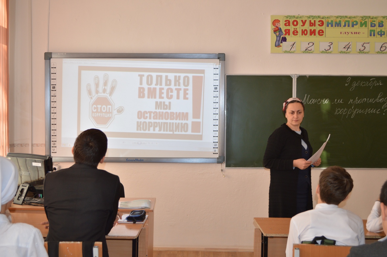 Ребята узнали про историю такого явления, как коррупция. Как пытались бороться с этим явлением в разное время, в разных странах. Учащимся было предложено подумать над тем, можно ли победить коррупцию, какие способы существуют для борьбы с ней. Рассказ классного руководителя сопровождался показом презентации, учащиеся сами приводили примеры из жизни и пытались анализировать поставленные вопросы и вместе искать ответы.