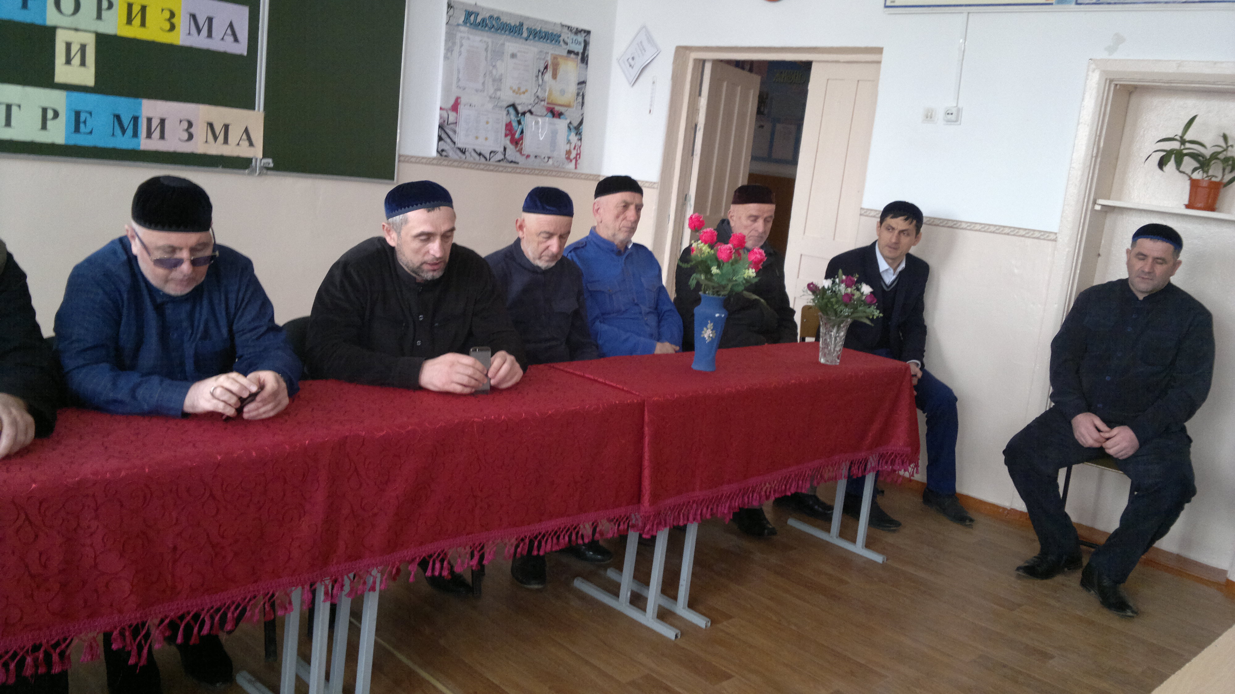 АСОШ №3 Терхоев М., представители духовенства Умаров С., Сулаев А., заместитель директора по ДНВ АСОШ №2 Кукаев И. Я. и директор АСОШ №2 Сулейманов Р. Ш.