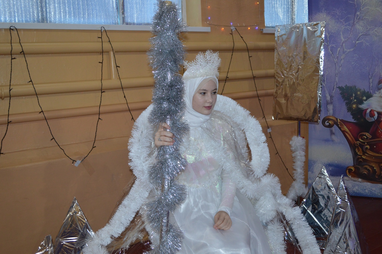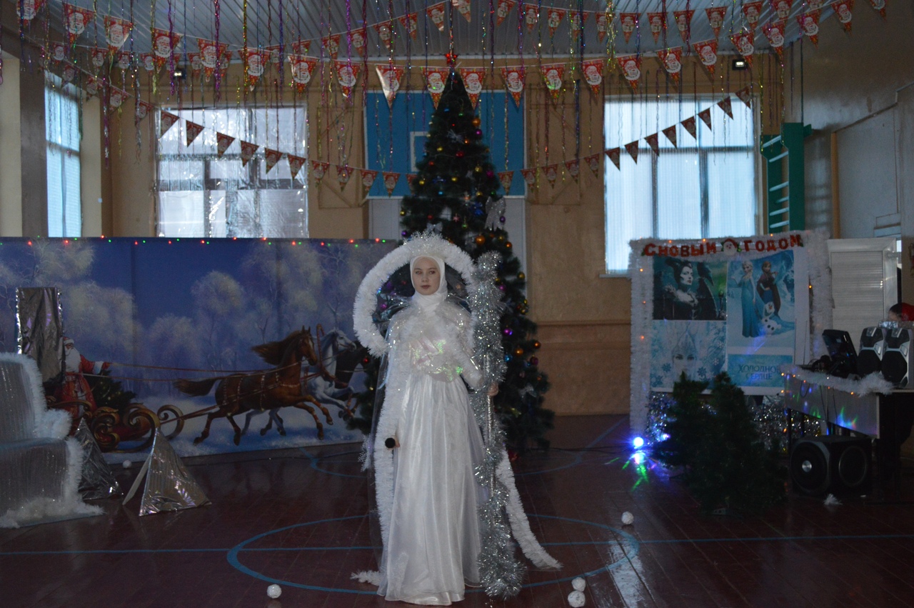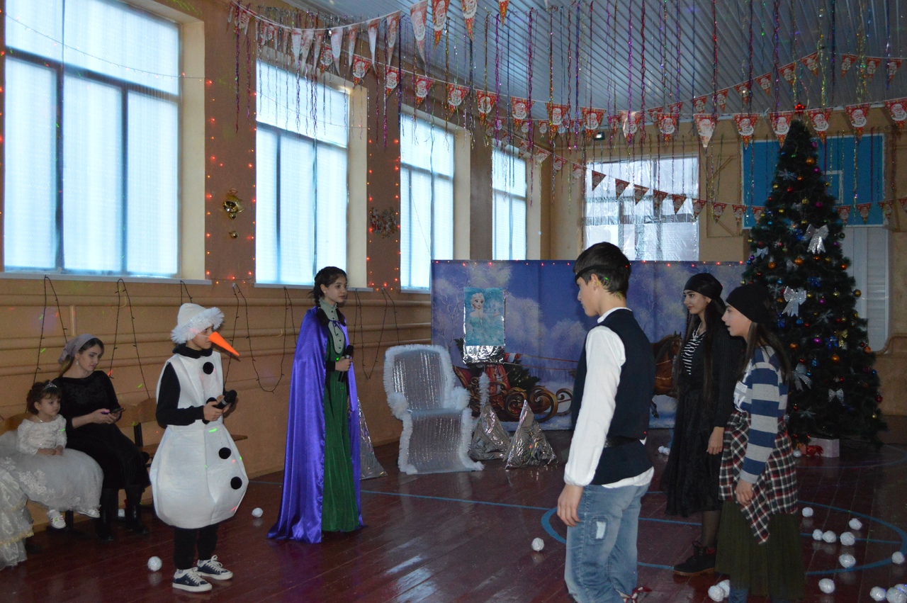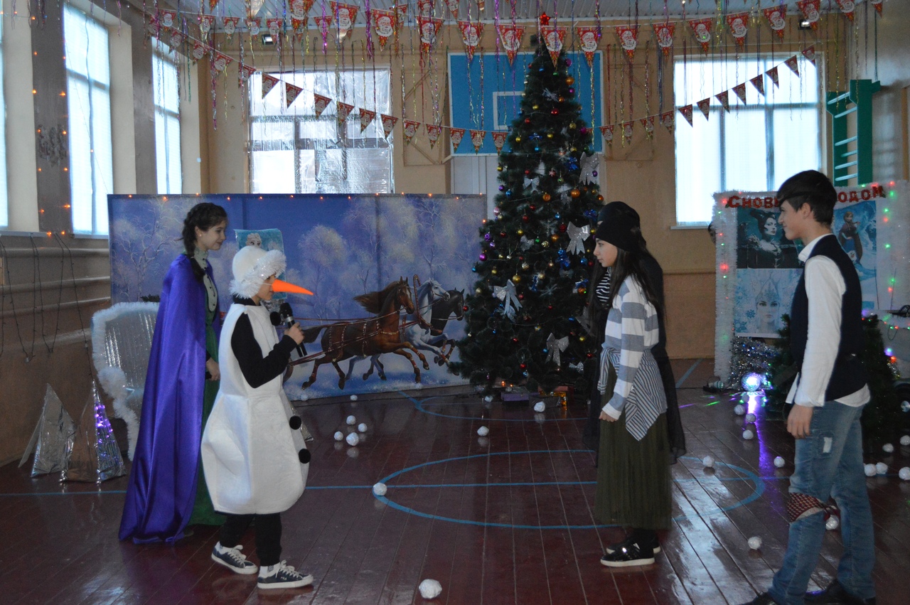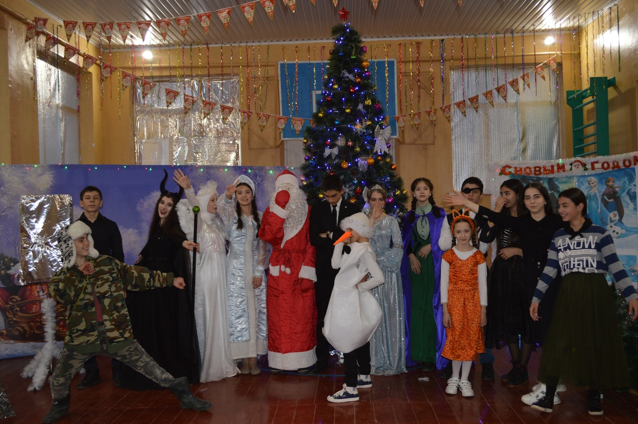 Адуева А. С. подготовила увлекательную и волшебную новогоднюю программу, в которой были задействованы учащиеся среднего и старшего звена. В празднично оформленном зале зрителей ждало театрализованное представление по мотивам мультфильма «Холодное сердце». Эта волшебная новогодняя сказка была интересна не только самым маленьким, но взрослым зрителям. Веселые игры, любимые сказочные герои, а самое главное, зажигательная лезгинка – все это было в нашей школе.