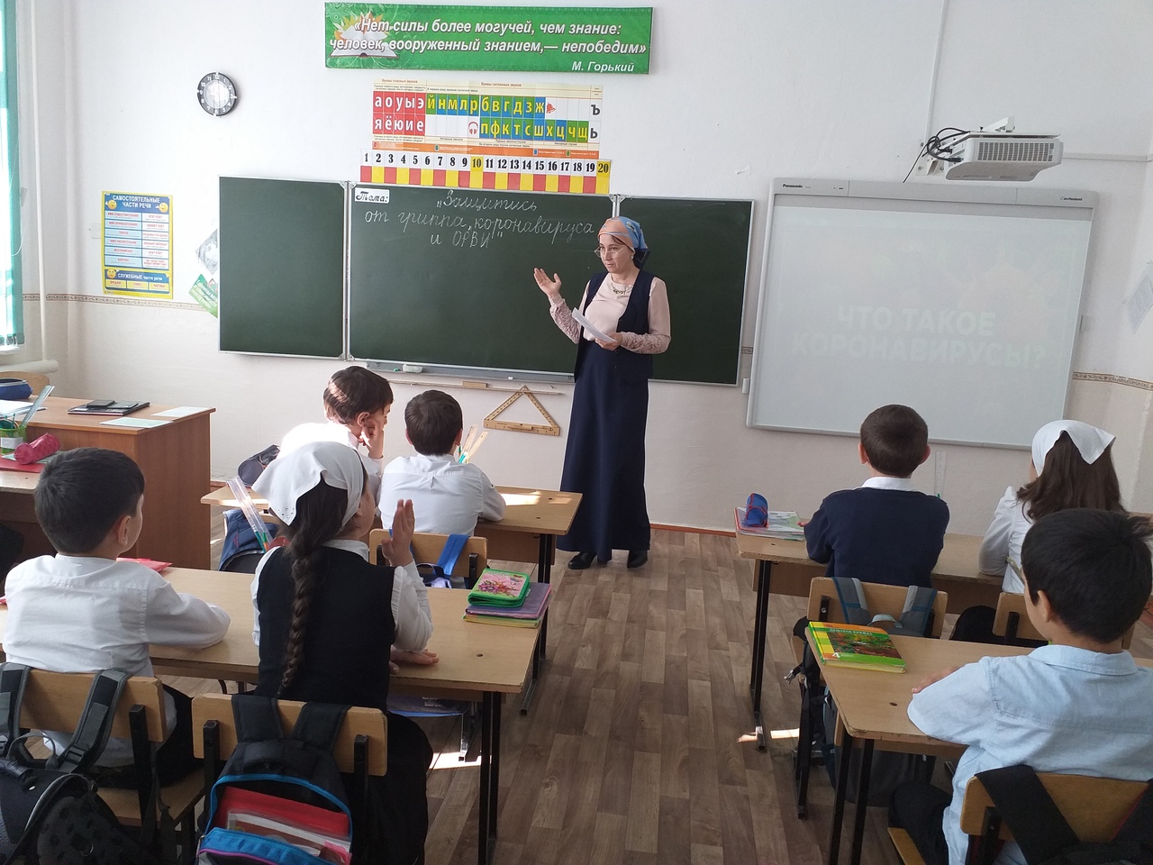 Во вступительной части беседы Мухаева Л. С. поинтересовалась, а знают ли дети, что такое коронавирус? Самым сведущим оказался учащийся Ахадов Ислам, он сообщил, что вспышка коронавирусной инфекции произошла в Китае, а именно в городе Ухане, пояснил причины заражения инфекцией. Подробно изучили симптомы, что нужно знать о вирусе и меры предосторожности. Классный руководитель дала общее представление о гриппе, коронавирусе, ОРВИ, о причинах их возникновения, возбудителе, симптомах заболеваний. Беседа завершилась показом видеоролика и раздачей каждому ребенку профилактических памяток. Проведенная беседа научит детей защищать свой организм от перечисленных заболеваний.