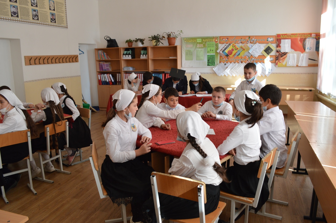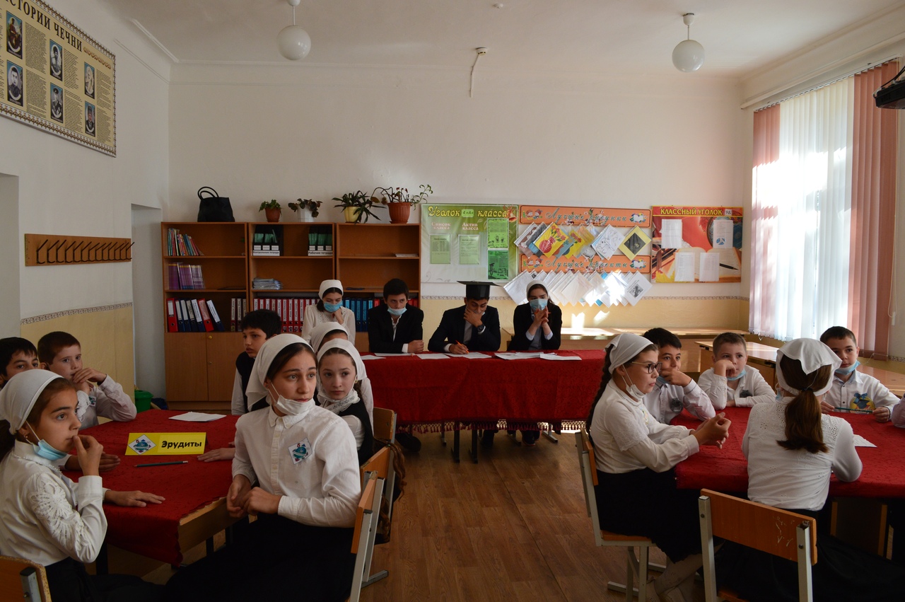 19.10.2020Учитель математики Хамзатова З. Х. провела конкурс КВМ (Клуб веселых математиков) «Думай, решай, отгадывай» между 5 и 6 классами.Игра проходила в форме соревнования двух команд.