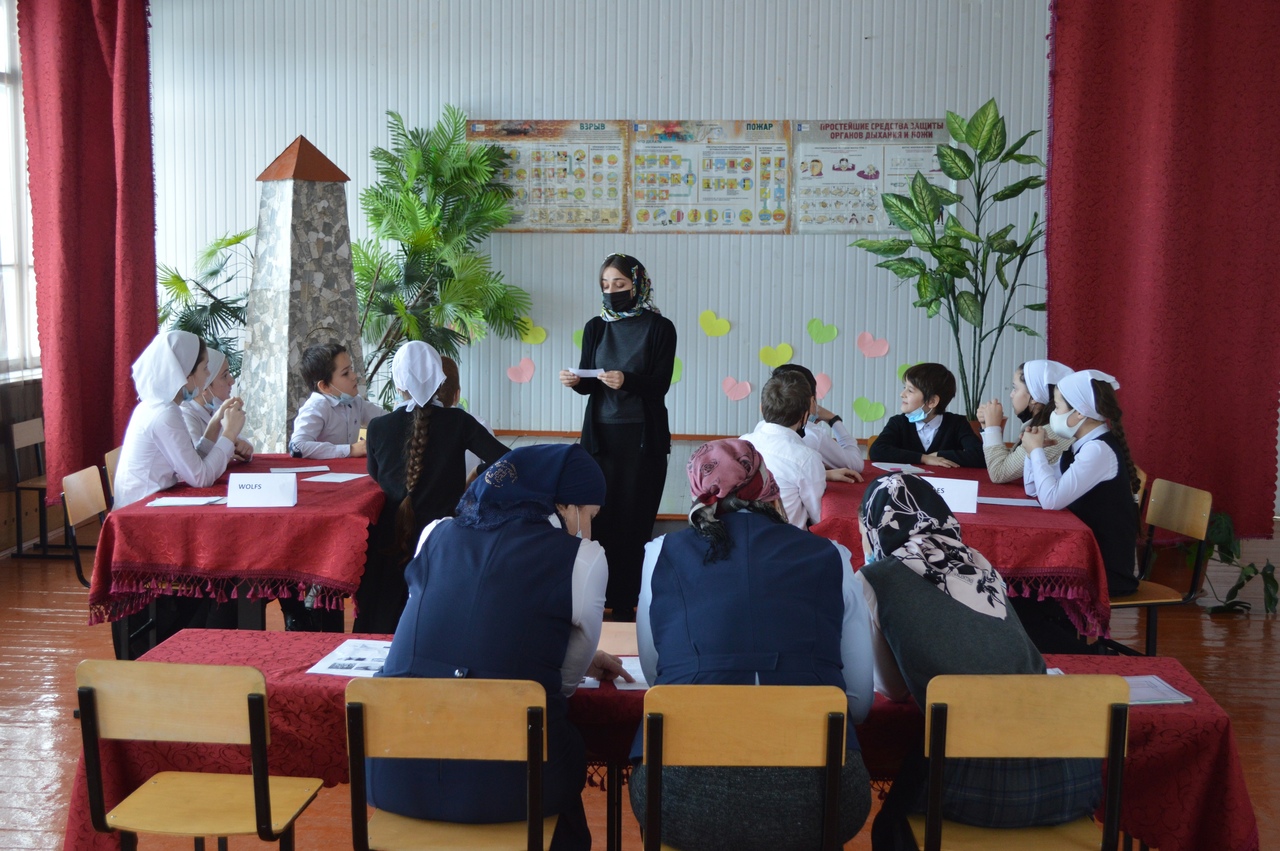 Мероприятие было составлено в форме групповой работы с использованием игровой технологии и метода соревнования, что дало возможность обеим командам проявить активность, сплоченность, умение работать в сотрудничестве. Серьезное испытание в знании английского языка достойно выдержали капитаны команд – Адуев Мяхди и Ахадов Ислам. Викторина завершилась с разницей лишь в 1 балл 32:33 в пользу 5б класса.
