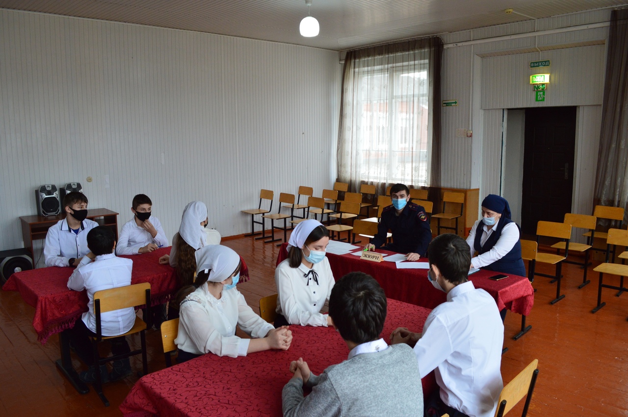 В школе ведется работа по формированию правовой культуры, развития навыков правомерного поведения учащихся. Основу мероприятия составили команды отряда ЮДП 7а и 8а классов. Ребята, совместно с руководителем ЮДП Умаровой С. С., проводят конкурсы, викторины на правовые темы, изучают права и обязанности, что способствует повышению ответственности за свое поведение.Приятно отметить, что мероприятия отряда ЮДП посещает инспектор ПДН младший лейтенант Хозаев Д. А. На этот раз он выполнял обязанности жюри, а самое приятное, что обе команды набрали по 20 баллов.