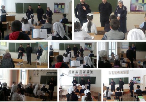 Встреча с подростками в школе и проведение плановых профилактических бесед является неотъемлемой частью совместной работы работников правоохранительных органов и школы. В беседе с учащимися А. У. Хачубаров и С. А. Джамалдинова рассказали ребятам как не стать жертвой преступления: были подняты вопросы безопасности жизни и здоровья ребят. А. Хачубаров объяснил ребятам, что нешуточные страсти подростковых групп вокруг суицидальной пропаганды в Интернете – это совершенно неприемлемые для нашего народа и веры увлечения.
