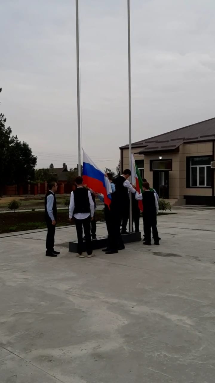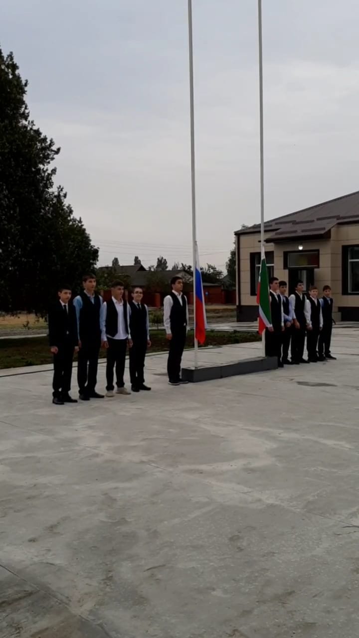 05.09.2022Сегодня в нашей школе, как и во всех образовательных организациях страны, учебная неделя началась с выноса и поднятия флагов РФ и ЧР.