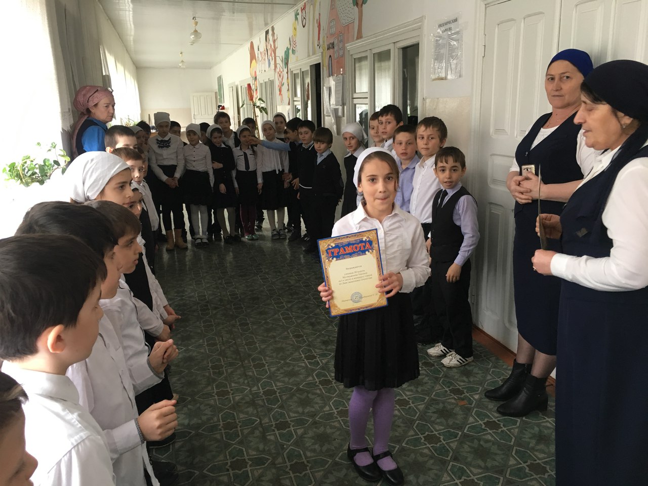 Для победителей конкурсов это стало настоящим праздником, особенно эмоциональна была ученица 1а класса Изиева Самира. Девочка заняла I место в конкурсе стихов не только школьного тура (кстати, I место школьного этапа она поделила с ученицей 1б класса Сатуевой Самирой), но и районного уровня.Также награду заслужила команда «Серые волки» - 3а класс, занявшая I место в конкурсе «А ну-ка, мальчики!» - капитан Ганаев Висхан, Кацаева Иман (3а), Мусхаджиева Т. (3б) и другие.