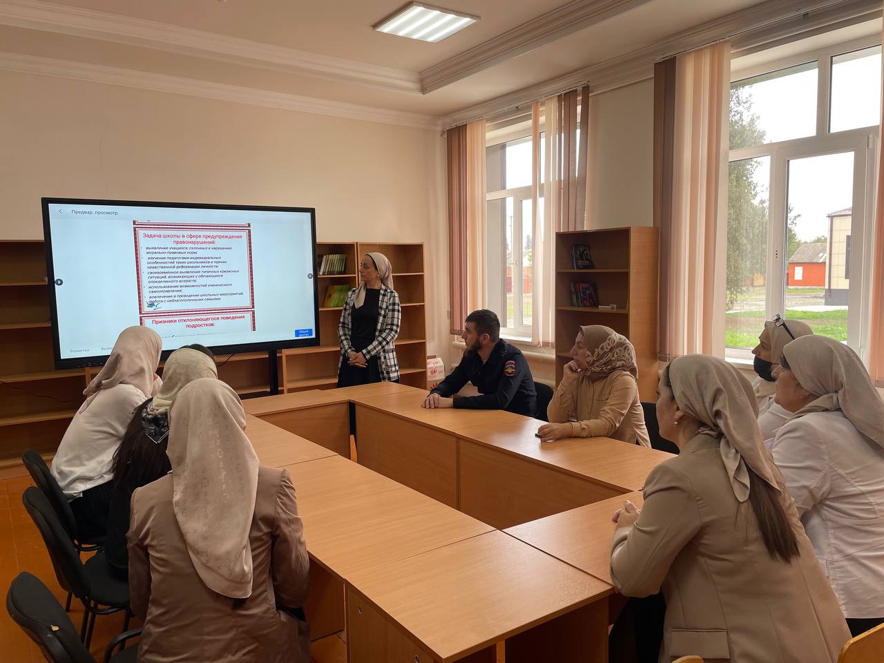Успешность воспитательного процесса зависит от того, как складываются отношения между педагогами, обучающимися и родителями. Очень важна правильная организация этого взаимодействия. Школа в своей работе использует следующие формы воспитательной работы:• выявление семей, находящихся в социально-опасном положении;• индивидуальные беседы с учащимися, родителями;• встречи, беседы представителей ПДН с учащимися и родителями;• посещение семей классными руководителями и социальным педагогом;• участие в работе общешкольных, классных родительских собраний.В семинаре приняли участие классные руководители, инспектор ПДН Хозаев Д. А.