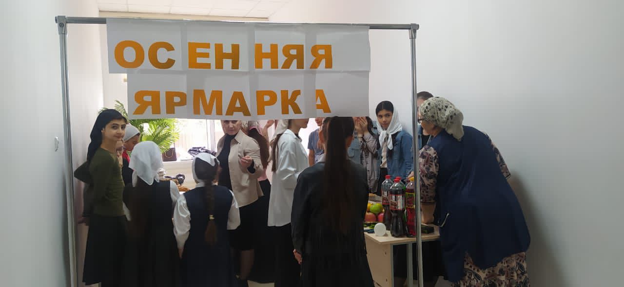Это праздник изобилия, здесь можно было купить домашнюю выпечку, пирожки, сладости по самым низким ценам. Ярмарку организовали учащиеся 6а и 7а классов. Ребята зазывали покупателей, торговали разными вкусностями, которые раскупались со столов. Классные руководители - Садулаева Д. У. и Сагаева М. М. постарались как можно ярче оформить «торговое место». Осенняя ярмарка принесла много позитивных эмоций всем участникам: «продавцам» и покупателям.