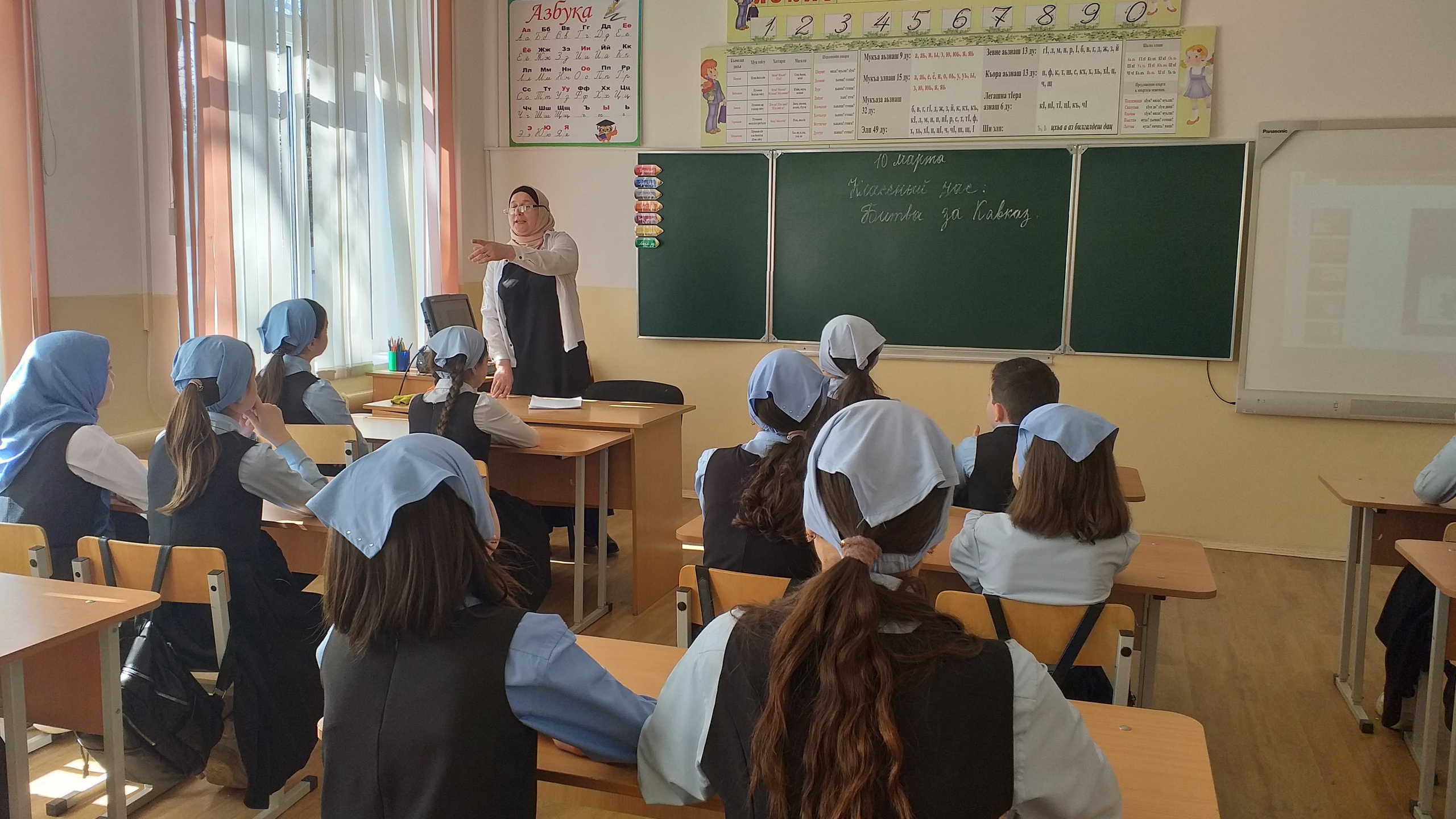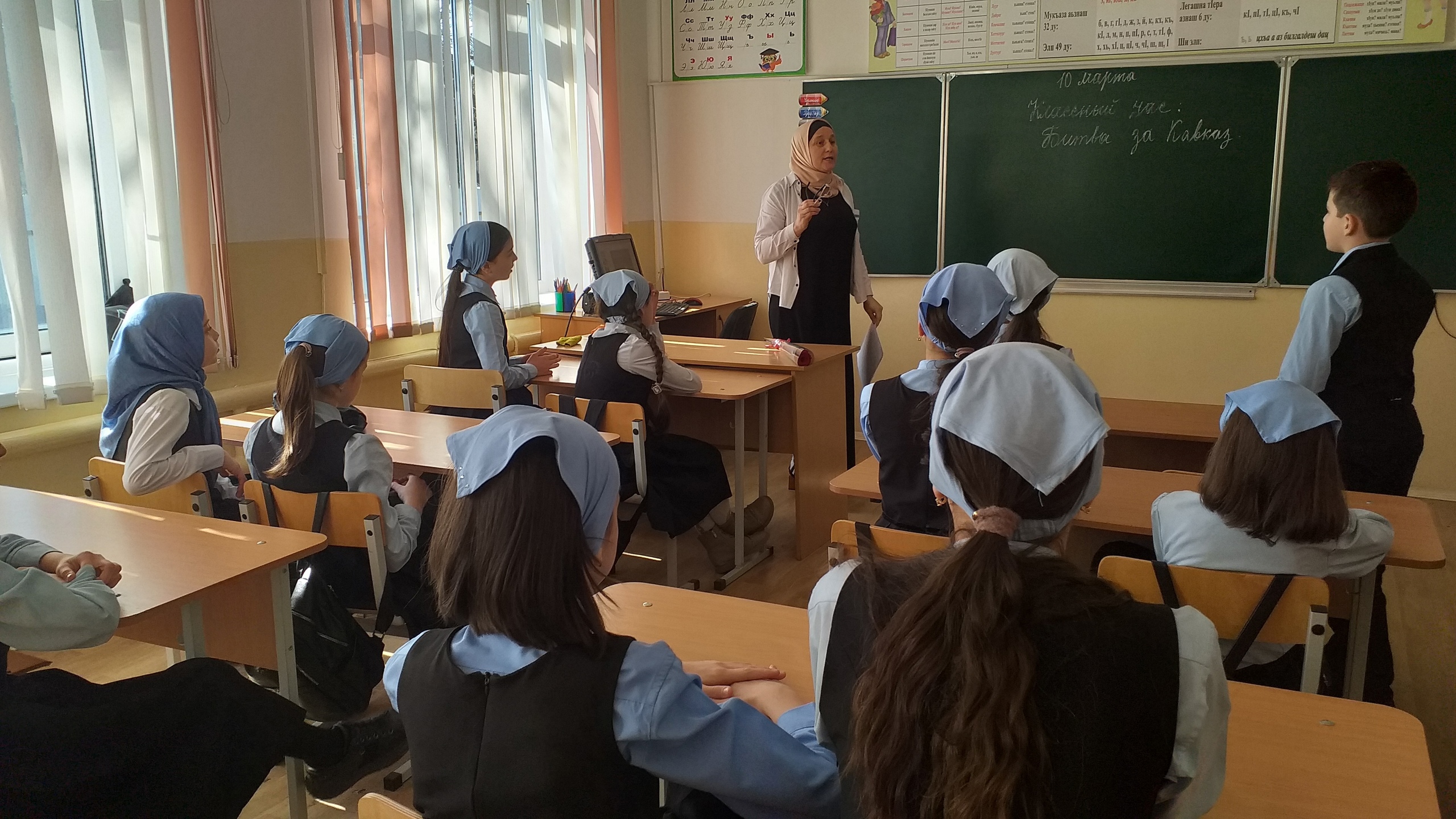 Она рассказала учащимся 5а класса о том, что битва за Кавказ имело для страны важное значение, а сама борьба была крайне тяжелой. Освобождение такой важной стратегической территории как Кавказ является одной из самых великих побед Советского Союза в Великой Отечественной войне.