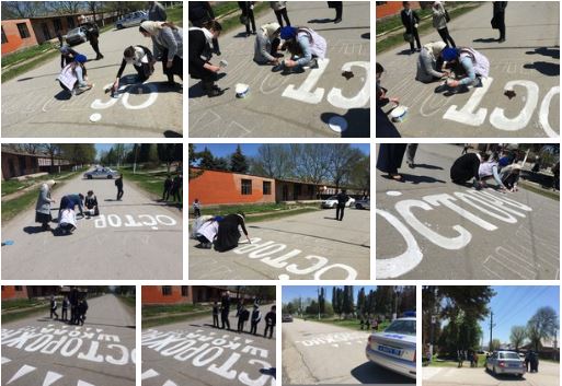Дорога и транспорт – места повышенной опасности, независимо от того, сколько пешеходу лет. Но если соблюдать простые правила, можно чувствовать себя уверенно в любых ситуациях. Девочки 11а класса написали на дороге «Осторожно, школа!» - обращение на пересечении трех дорог, где нередко лихачи демонстрируют свою «удаль». Для выполнения поставленных задач по профилактике ДТП мы объединили усилия школы, в лице выпускников, и работников ДПС. Акция, которая проходила у нас в школе, призвана еще раз напомнить всем участникам дорожного движения о необходимости быть взаимовежливыми и внимательными на улицах и дорогах. При проведении профилактических мероприятий в школе активную помощь оказывают инспектор по пропаганде БДД Канаев И.Т. Сайгариев А. М. – инспектор по ИАЗ ОГИБДД ОМВД России по Сунженскому району ЧР, Баймурзаев Р. Х. - инспектор ДПС ОГИБДД ОМВД России по Сунженскому району ЧР.