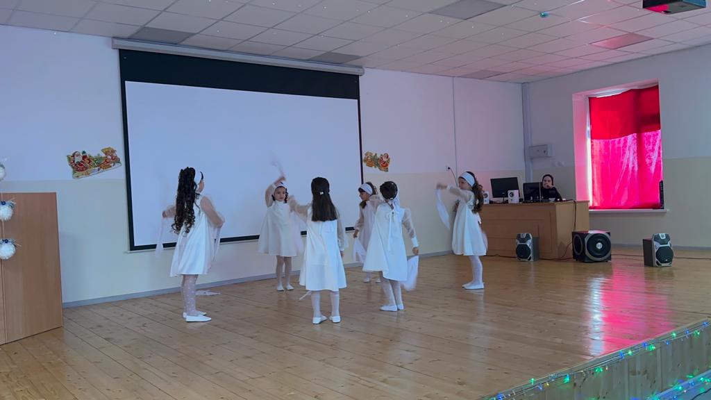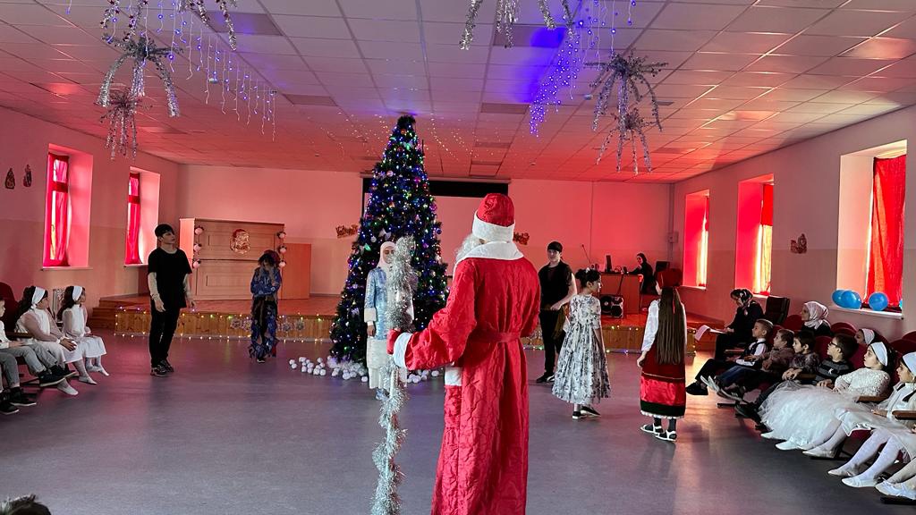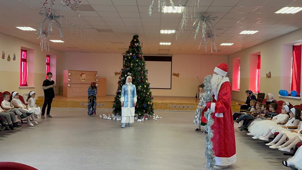 В зале разыгралось новогоднее представление, учащиеся 7а и 9а классов в полной мере продемонстрировали свои актерские способности.И, конечно, Красной Шапочке (Газгириева Х.), Фее (Изиева Р.), Деду Морозу (Губашев И.), Снегурочке (Асхабова Д.), двум разбойникам (Наурдиев Т., Чапанов А.) удалось развеселить детей и справиться со всеми трудностями, которые приготовила им Баба-Яга (Шамилова Я.). Герои новогоднего праздника увидели концертную программу, подготовленную учащимися начальных классов, в честь наступающего Нового года дети читали стихи, исполнили танец снежинок. Пик праздника – лезгинка! В завершение праздничного мероприятия учащиеся получили долгожданные подарки, сфотографировались с героями новогодней елки.