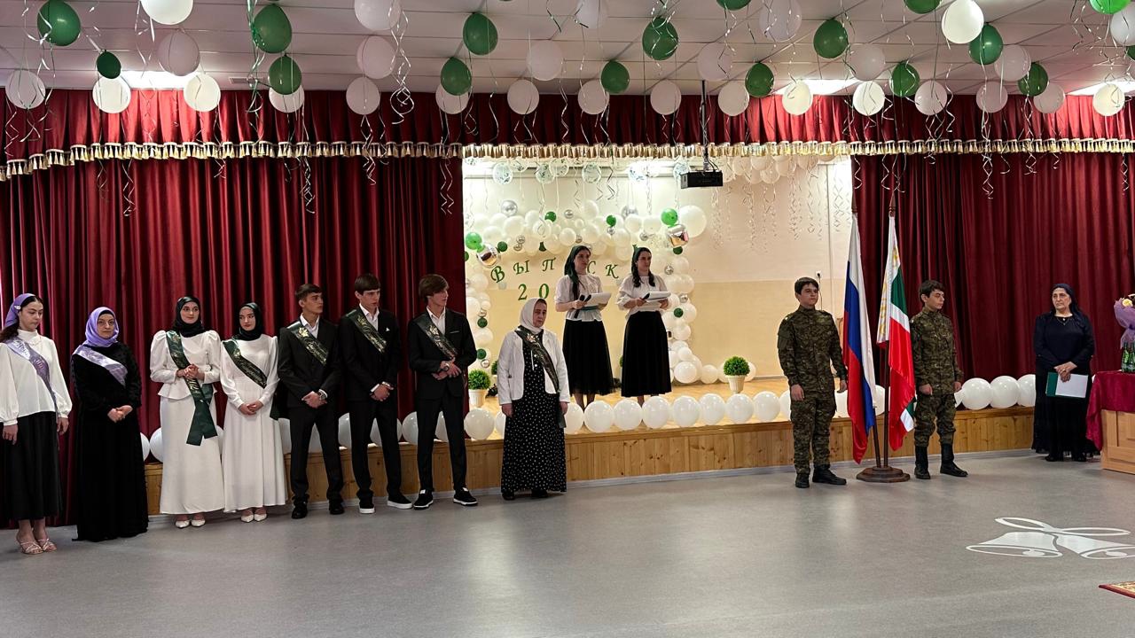 Право вноса флагов предоставлено юнармейцам Амриеву М. и Ахадову И. После исполнения Гимнов Российской Федерации и Чеченской Республики, с напутственными словами и добрыми пожеланиями к выпускникам обратились: Кавалер ордена Кадырова, Почетный гражданин Серноводского района, глава Серноводского муниципального района Исраилов И.С., кадий Серноводского муниципального района, Бахаев У.А., начальник РОО Абдусаламов М.У., специалист РМК Межиева Р.Д.Поздравила выпускников директор школы Абдулазиева З.М., заместитель директора по УР Гансуева М.Р. зачитала приказ о допуске к государственной итоговой аттестации выпускников 11а и 9а классов. Пожелали счастливого пути выпускникам классные руководители Абдулхаджиева Д.М., Адуева З.А. и самые маленькие жители школы – первоклассники.В свою очередь выпускники поблагодарили всех учителей, родителей за учителей за участие в их школьной жизни. Право дать последний звонок было предоставлено выпускнику 11 «А» класса Базуркаеву Исламу и учащейся 1 «А» класса Махаевой Хадиже.