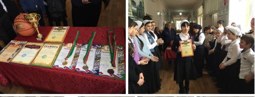 Учитель физической культуры Сулейманов А. Ш., замдиректора по учебной и воспитательной работе Гансуева М. Р. и Умарова Я. А. поздравили победителей. Главные достижения еще впереди!