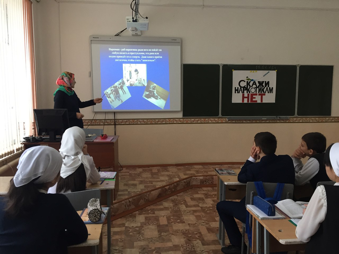 Актуальность проблемы профилактики наркомании и употребления ПАВ определяется ситуацией в стране, основной тенденцией которой является катастрофический рост числа наркозависимых, прежде всего, среди детей и подростков. Классный руководитель Амриева Р. А. объяснила учащимся о пагубности зависимости от психоактивных веществ и их последствий, что наркоман не только жертва наркотического пристрастия, но и реальная угроза для окружающих. Несовершеннолетние должны осознать значимость важнейшей ценности человека – здоровье, а также помнить о чистоте веры, моральных, этических нормах чеченского народа.
