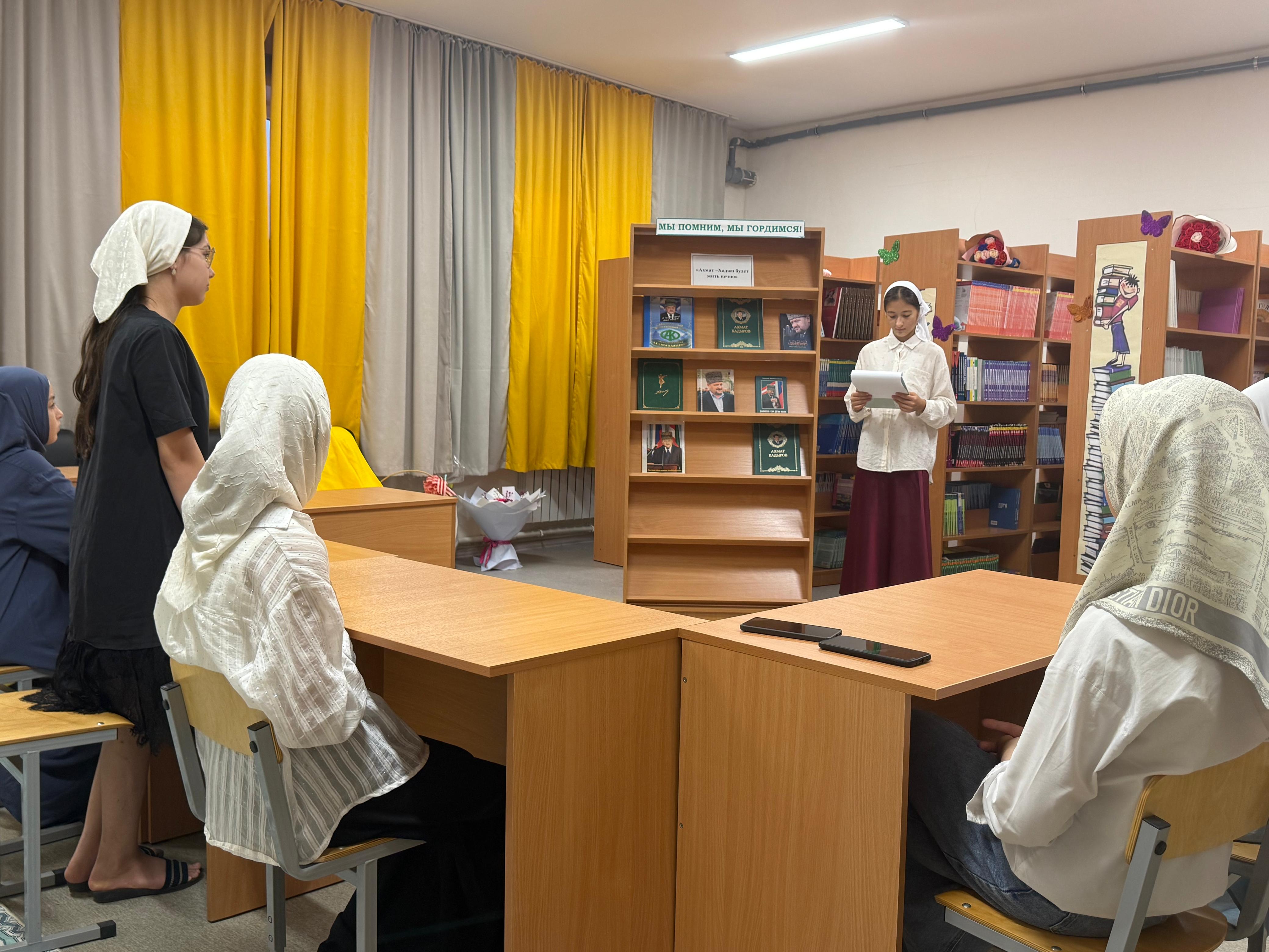 Проведена беседа на тему «Ахмат-Хаджи:помним , скорбим, не забудем», на которой выступили ученики нашей школы. Они рассказали о роли Ахмат-Хаджи Кадырова в современной истории Чеченской Республики и Российской Федерации. Ценой своей жизни он спас народы Чеченской республики от неминуемой гибели. Сегодня Чеченская Республика находится в числе наиболее активно развивающихся субъектов России, что отражается во всех сферах жизни. Все позитивные изменения в нашем обществе неразрывно связаны с именем и делами этого выдающегося человека, героя и патриота своего народа. Более того, первый Президент Чеченской республики внес огромный вклад в сохранении целостности российского государства и наша святая обязанность чтить и приумножать память об этом великом сыне чеченского народа.