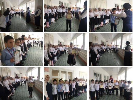 07.04.20187 апреля проведена линейка по чествованию победителей творческих конкурсов и спортивных турниров среди учащихся начальных классов – Сатуева С., Амриев М., Махаури М. (2б), Баснакаева М., Дамаев З.(4а).