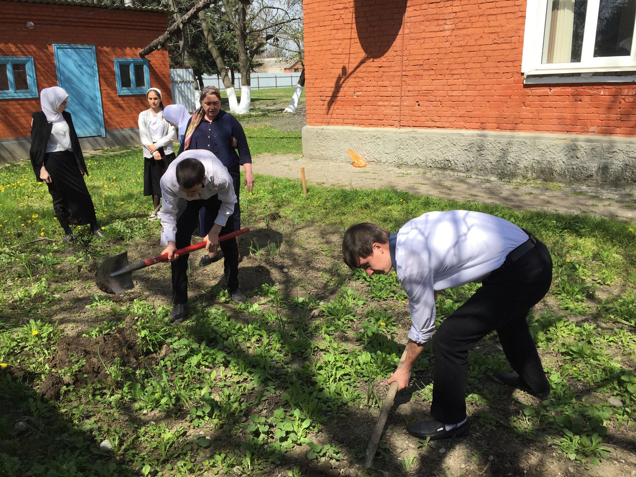 18 апреля 10а класс со своим классным руководителем Губашевой А. А. начал работы на пришкольном участке. Ребята вскопали грядки, разрыхлили почву, таким образом, подготовили участок для посева семян.