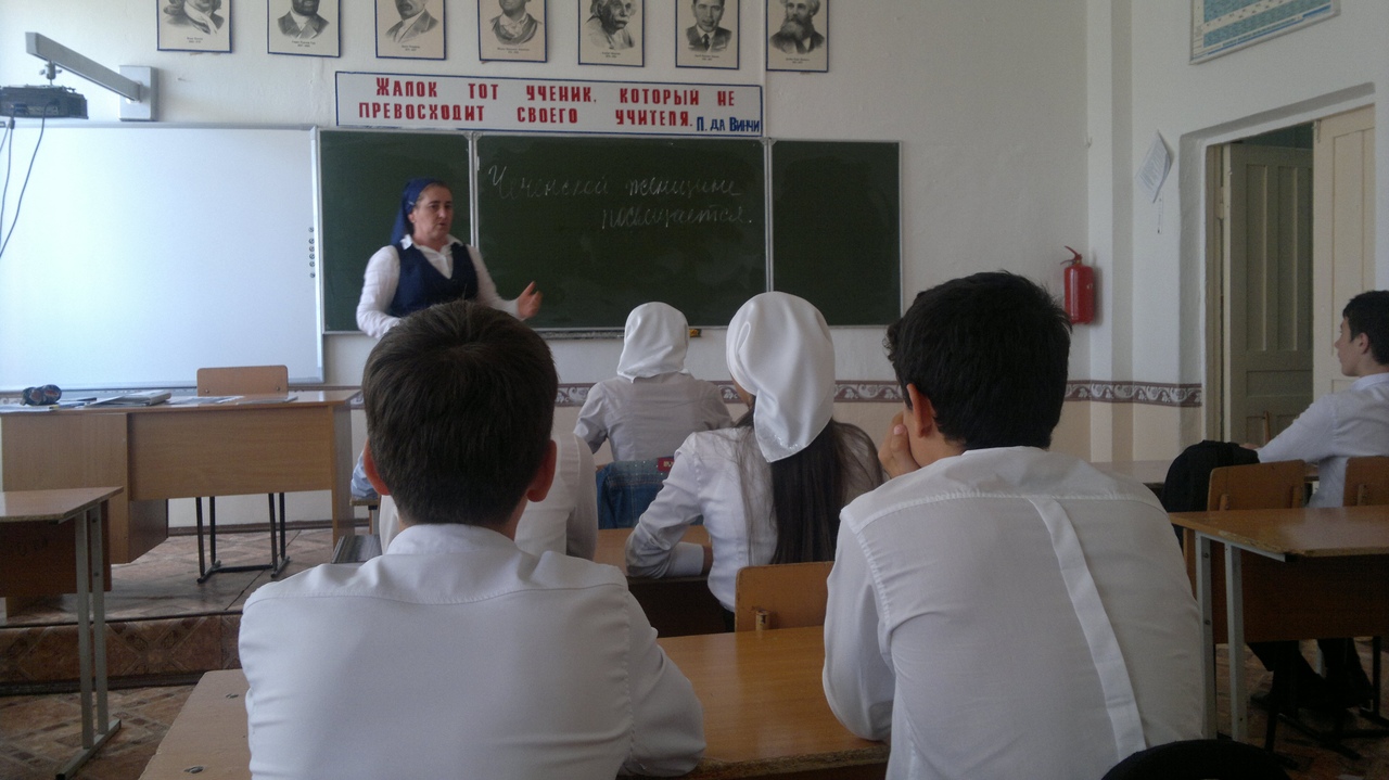 Классный руководитель Абдулхаджиева Д. М. Во вступительной части классного часа Абдулхаджиева Д. М. рассказала, что в основе праздника лежит исторический факт – как 14 сентября 1829 года во времена Кавказской войны 46 чеченских плененных девушек из сожженного селения Дади-Юрт утопили плот и сами погибли, увлекая за собой солдат. Для вайнахов женщина является образцом стойкости, нравственности и чистоты – сказала классный руководитель.