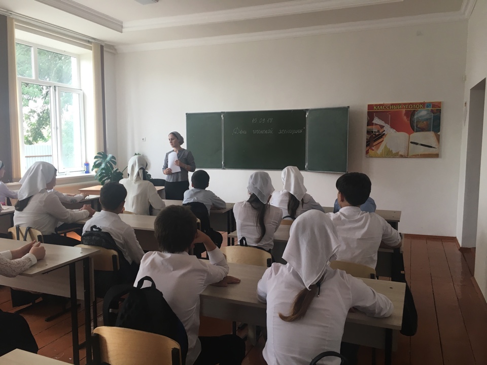 15.09.201815 сентября в 7б классе классным руководителем Садулаевой Д. У. проведен классный час «День чеченской женщины». Классный руководитель рассказала о славных страницах истории чеченских женщин, о трагических событиях в истории Дади-Юрта и 46 чеченских девушек.