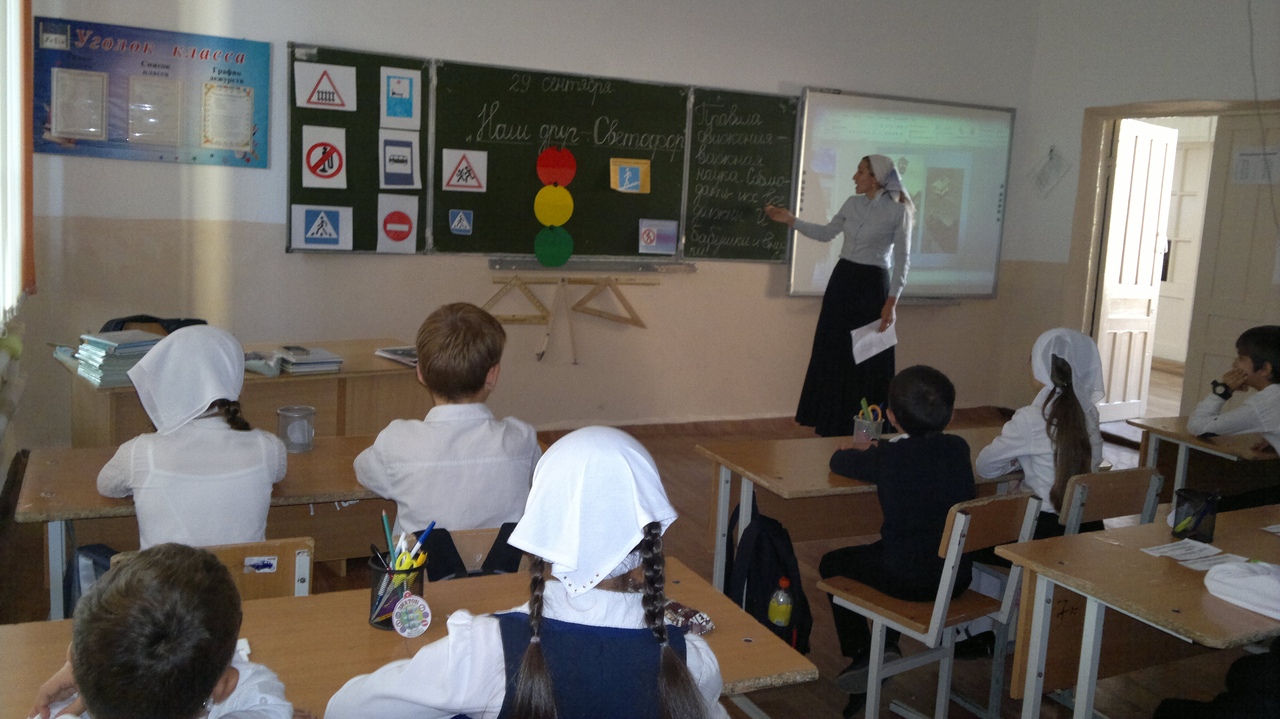 Классный руководитель наставляла детей, что каждый школьник должен знать улица очень опасна для того, кто не умеет правильно ходить по ней. Но тот, кто твердо знает и точно выполняет строгие правила дорожного движения, может не опасаться. Муслиева М. Р. использовала позитивный настрой, доброжелательный тон, то есть, форма организации классного часа была эффективной, динамичной: пояснение, указание, показ, игровой прием, поощрение активности детей.
