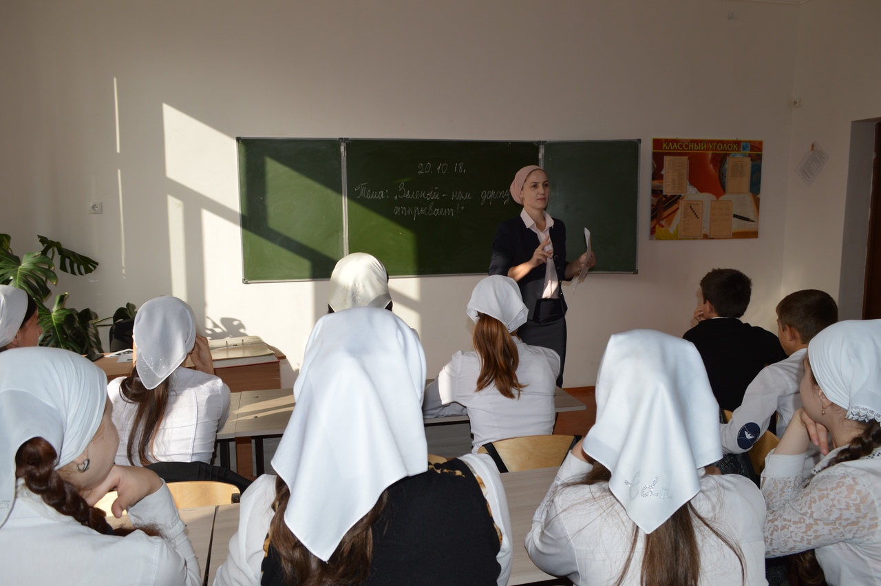 20.10.2018В рамках месячника по БДД «Внимание, дети!» в 7б классе Садулаевой Д. У. проведен классный час-викторина «Зеленый нам дорогу открывает».