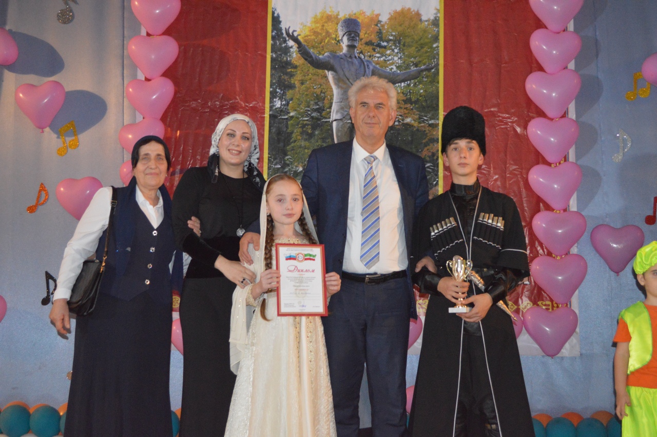 В творческом состязании за обладание дипломами трех степеней и кубков приняли участие художественные коллективы детских садов, домов культуры Сунженского муниципального района. На мероприятии присутствовали: Глава администрации Сунженского муниципального района Терхоев Н. Д., глава администрации Ассиновского сельского поселения Терхоев М. Д., управделами администрации Ассиновского сельского поселения Муташева З. А., директор СДК ст. Ассиновской Тайпаева Ф. С., директор ДМШ Харданова И. А., гости из Урус-Мартановского и Ачхой-Мартановского районов – работники искусства хореографии и другие. Жюри подвело итоги, и председатель Муташева З. А. огласила итоги конкурса. В конкурсе старшей возрастной группы парный танец Махаури У. и Накаевой М. занял 1-ое место, школу наградили кубком и дипломом I степени. Я от души поздравляю моих воспитанников за талант и победу!!!