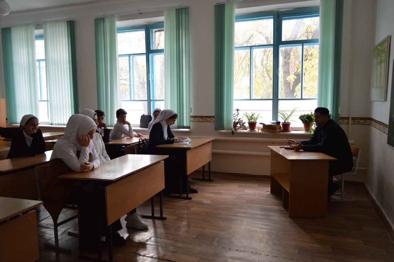 25.10.201825 октября в 11а классе Кукаев И. Я. провел беседу «Мухаммад - основатель Ислама». Кукаев И. Я. рассказал о родителях и родственников Пророка Мухммада (с. а. в. с.), как Он жил в детстве, какие знания приобрел в юности, какие качества Его личности ценились окружающими, как они помогали Ему в своих благих деяниях.