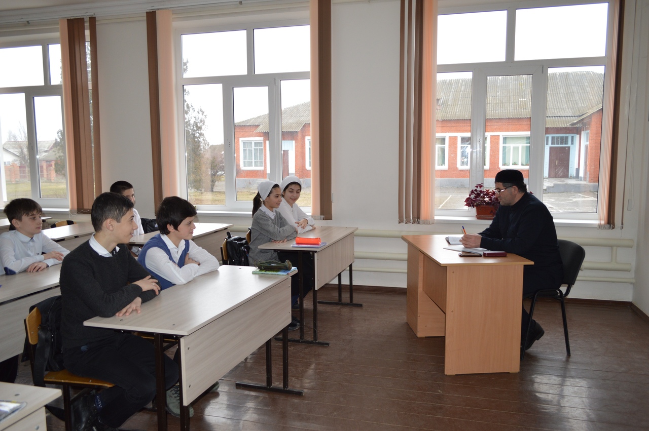 04.02.2019В 7а классе Кукаевым И. Я. проведена беседа «Ислам запрещает наркотики».