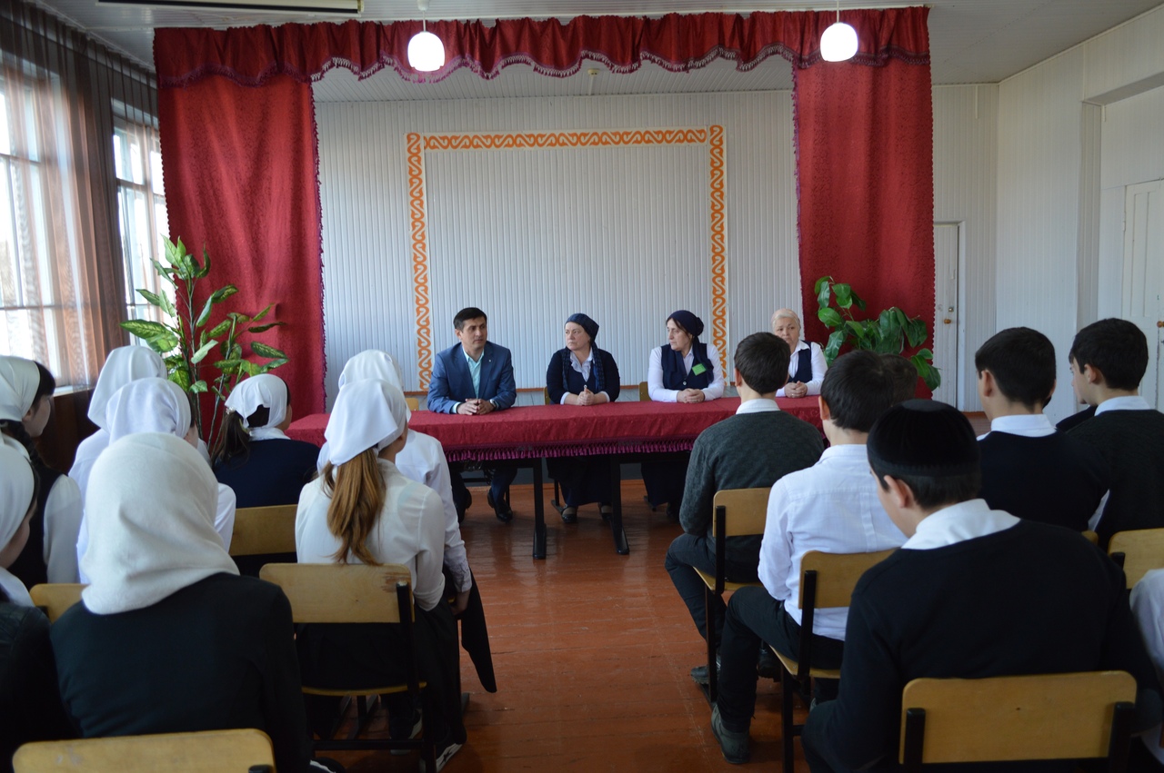 На ней присутствовали: директор школы Сулейманов Р. Ш., заместители директора по учебной и воспитательной работе Гансуева М. Р., Умарова Я. А., психолог Гелаева А. Б. Для подросткового возраста характерны как позитивные, так и негативные проявления. Данная беседа-встреча будет способствовать саморазвитию, самопознанию подростков в отношениях с окружающими.