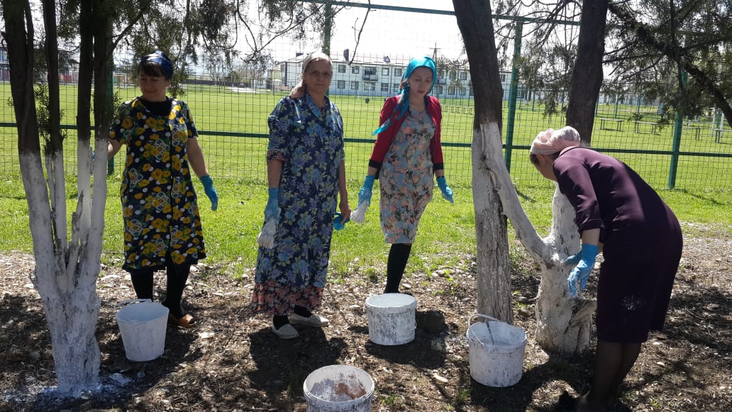 24.04.201924 апреля 2019 года учителя начальных классов Махаури Э. Б., Амаева Л. А., Муслиева М. Р., Яхъяева М. Х. вышли на субботник по побелке деревьев.